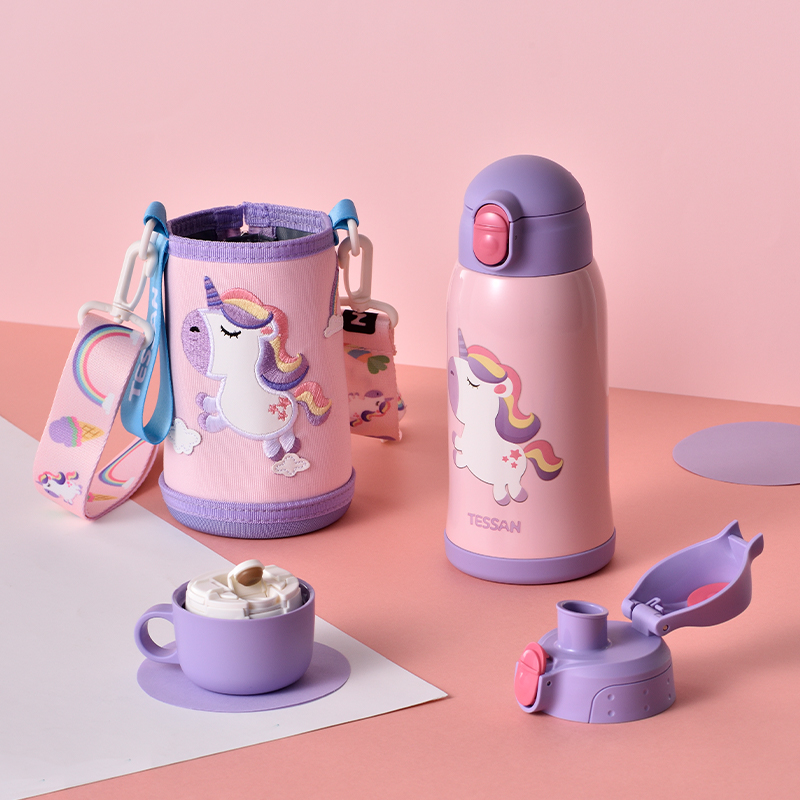 The bottle features a wide mouth opening, allowing for easy filling, cleaning, and adding ice cubes. It comes with three interchangeable lids, including a direct drinking lid, a straw lid, and a twist cap, giving children and parents the flexibility to choose the most convenient option for different situations. The straw lid makes sipping fun and effortless, while the direct drinking lid provides a traditional drinking experience.